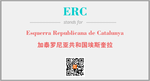 上述内容是“Esquerra Republicana de Catalunya”作为“ERC”的缩写,解释为“加泰罗尼亚共和国埃斯奎拉”时的信息,以及英文缩略词ERC所代表的英文单词,其对应的中文拼音、详细解释以及在英文中的流行度和相关分类、应用领域及应用示例等。