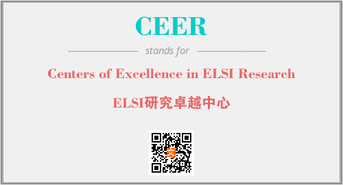 上述内容是“Centers of Excellence in ELSI Research”作为“CEER”的缩写,解释为“ELSI研究卓越中心”时的信息,以及英文缩略词CEER所代表的英文单词,其对应的中文拼音、详细解释以及在英文中的流行度和相关分类、应用领域及应用示例等。