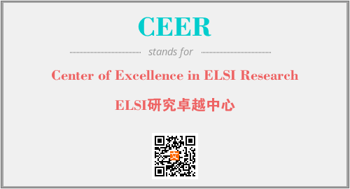 上述内容是“Center of Excellence in ELSI Research”作为“CEER”的缩写,解释为“ELSI研究卓越中心”时的信息,以及英文缩略词CEER所代表的英文单词,其对应的中文拼音、详细解释以及在英文中的流行度和相关分类、应用领域及应用示例等。