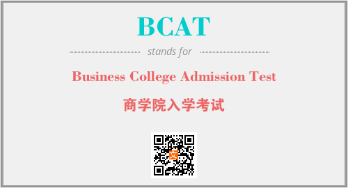英文缩略词“BCAT”经常作为“Business College Admission Test”的英文缩写来使用,中文表示:“商学院入学考试”。本文将详细介绍英文缩写词BCAT所代表英文单词,其对应的中文拼音、详细解释以及在英语中的流行度。此外,还有关于缩略词BCAT的分类、应用领域及相关应用示例等。