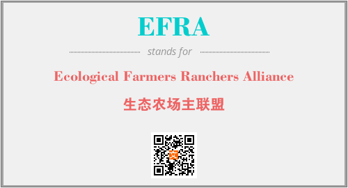 上述内容是“Ecological Farmers Ranchers Alliance”作为“EFRA”的缩写,解释为“生态农场主联盟”时的信息,以及英文缩略词EFRA所代表的英文单词,其对应的中文拼音、详细解释以及在英文中的流行度和相关分类、应用领域及应用示例等。