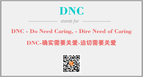 上述内容是“DNC - Do Need Caring, - Dire Need of Caring”作为“DNC”的缩写,解释为“DNC-确实需要关爱-迫切需要关爱”时的信息,以及英文缩略词DNC所代表的英文单词,其对应的中文拼音、详细解释以及在英文中的流行度和相关分类、应用领域及应用示例等。