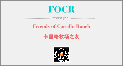 上述内容是“Friends of Carrillo Ranch”作为“FOCR”的缩写,解释为“卡里略牧场之友”时的信息,以及英文缩略词FOCR所代表的英文单词,其对应的中文拼音、详细解释以及在英文中的流行度和相关分类、应用领域及应用示例等。