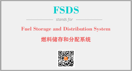 上述内容是“Fuel Storage and Distribution System”作为“FSDS”的缩写,解释为“燃料储存和分配系统”时的信息,以及英文缩略词FSDS所代表的英文单词,其对应的中文拼音、详细解释以及在英文中的流行度和相关分类、应用领域及应用示例等。