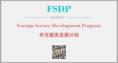 上述内容是“Foreign Service Development Program”作为“FSDP”的缩写,解释为“外交服务发展计划”时的信息,以及英文缩略词FSDP所代表的英文单词,其对应的中文拼音、详细解释以及在英文中的流行度和相关分类、应用领域及应用示例等。