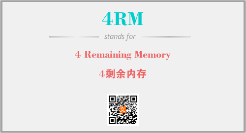 上述内容是“4 Remaining Memory”作为“4RM”的缩写,解释为“4剩余内存”时的信息,以及英文缩略词4RM所代表的英文单词,其对应的中文拼音、详细解释以及在英文中的流行度和相关分类、应用领域及应用示例等。