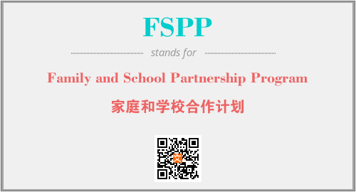 上述内容是“Family and School Partnership Program”作为“FSPP”的缩写,解释为“家庭和学校合作计划”时的信息,以及英文缩略词FSPP所代表的英文单词,其对应的中文拼音、详细解释以及在英文中的流行度和相关分类、应用领域及应用示例等。