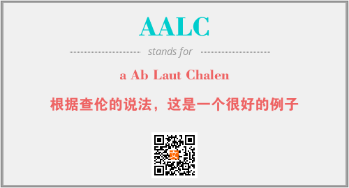 上述内容是“a Ab Laut Chalen”作为“AALC”的缩写,解释为“根据查伦的说法,这是一个很好的例子”时的信息,以及英文缩略词AALC所代表的英文单词,其对应的中文拼音、详细解释以及在英文中的流行度和相关分类、应用领域及应用示例等。