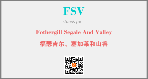 上述内容是“Fothergill Segale And Valley”作为“FSV”的缩写,解释为“福瑟吉尔、塞加莱和山谷”时的信息,以及英文缩略词FSV所代表的英文单词,其对应的中文拼音、详细解释以及在英文中的流行度和相关分类、应用领域及应用示例等。