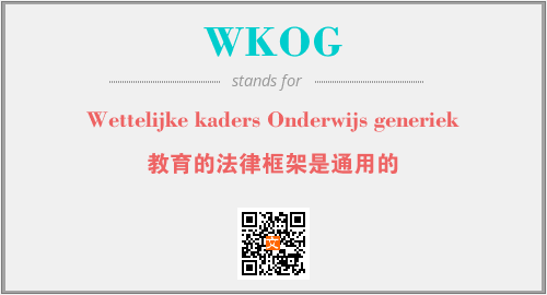 上述内容是“Wettelijke kaders Onderwijs generiek”作为“WKOG”的缩写,解释为“教育的法律框架是通用的”时的信息,以及英文缩略词WKOG所代表的英文单词,其对应的中文拼音、详细解释以及在英文中的流行度和相关分类、应用领域及应用示例等。