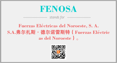 英文缩略词“FENOSA”经常作为“Fuerzas Eléctricas del Noroeste, S. A.”的英文缩写来使用,中文表示:“S.A.弗尔扎斯·德尔诺雷斯特(Fuerzas Eléctricas del Noroeste)。”。本文将详细介绍英文缩写词FENOSA所代表英文单词,其对应的中文拼音、详细解释以及在英语中的流行度。此外,还有关于缩略词FENOSA的分类、应用领域及相关应用示例等。