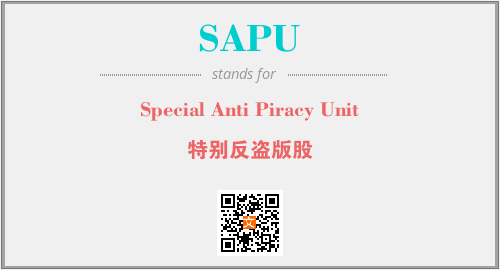 英文缩略词“SAPU”经常作为“Special Anti Piracy Unit”的英文缩写来使用,中文表示:“特别反盗版股”。本文将详细介绍英文缩写词SAPU所代表英文单词,其对应的中文拼音、详细解释以及在英语中的流行度。此外,还有关于缩略词SAPU的分类、应用领域及相关应用示例等。