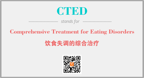 上述内容是“Comprehensive Treatment for Eating Disorders”作为“CTED”的缩写,解释为“饮食失调的综合治疗”时的信息,以及英文缩略词CTED所代表的英文单词,其对应的中文拼音、详细解释以及在英文中的流行度和相关分类、应用领域及应用示例等。
