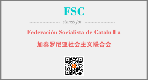 英文缩略词“FSC”经常作为“Federación Socialista de Cataluña”的英文缩写来使用,中文表示:“加泰罗尼亚社会主义联合会”。本文将详细介绍英文缩写词FSC所代表英文单词,其对应的中文拼音、详细解释以及在英语中的流行度。此外,还有关于缩略词FSC的分类、应用领域及相关应用示例等。