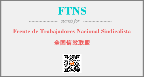 上述内容是“Frente de Trabajadores Nacional Sindicalista”作为“FTNS”的缩写,解释为“全国信教联盟”时的信息,以及英文缩略词FTNS所代表的英文单词,其对应的中文拼音、详细解释以及在英文中的流行度和相关分类、应用领域及应用示例等。