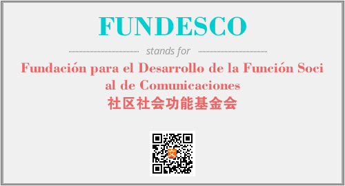 上述内容是“Fundación para el Desarrollo de la Función Social de Comunicaciones”作为“FUNDESCO”的缩写,解释为“社区社会功能基金会”时的信息,以及英文缩略词FUNDESCO所代表的英文单词,其对应的中文拼音、详细解释以及在英文中的流行度和相关分类、应用领域及应用示例等。