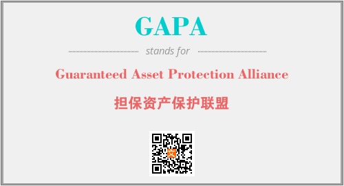 以上为Guaranteed Asset Protection Alliance英文缩略词GAPA的中文解释,以及该英文缩写在英语的流行度、分类和应用领域方面的信息。