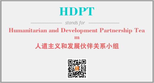 上述内容是“Humanitarian and Development Partnership Team”作为“HDPT”的缩写,解释为“人道主义和发展伙伴关系小组”时的信息,以及英文缩略词HDPT所代表的英文单词,其对应的中文拼音、详细解释以及在英文中的流行度和相关分类、应用领域及应用示例等。