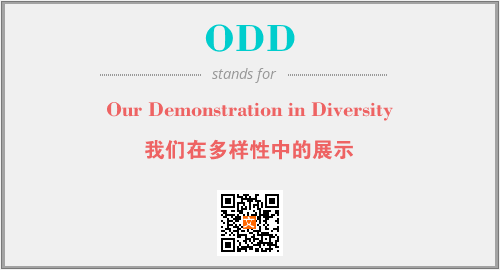 上述内容是“Our Demonstration in Diversity”作为“ODD”的缩写,解释为“我们在多样性中的展示”时的信息,以及英文缩略词ODD所代表的英文单词,其对应的中文拼音、详细解释以及在英文中的流行度和相关分类、应用领域及应用示例等。