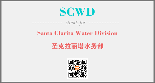 上述内容是“Santa Clarita Water Division”作为“SCWD”的缩写,解释为“圣克拉丽塔水务部”时的信息,以及英文缩略词SCWD所代表的英文单词,其对应的中文拼音、详细解释以及在英文中的流行度和相关分类、应用领域及应用示例等。