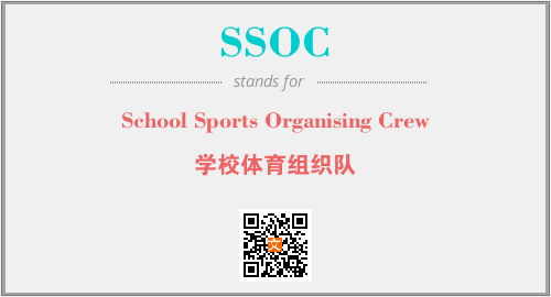英文缩略词“SSOC”经常作为“School Sports Organising Crew”的英文缩写来使用,中文表示:“学校体育组织队”。本文将详细介绍英文缩写词SSOC所代表英文单词,其对应的中文拼音、详细解释以及在英语中的流行度。此外,还有关于缩略词SSOC的分类、应用领域及相关应用示例等。