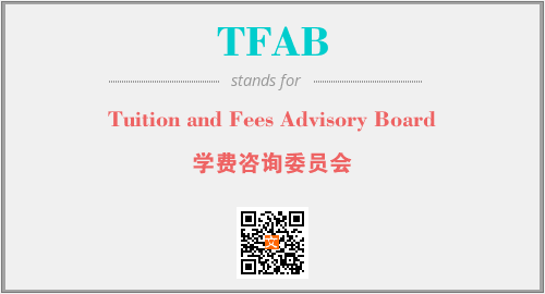 上述内容是“Tuition and Fees Advisory Board”作为“TFAB”的缩写,解释为“学费咨询委员会”时的信息,以及英文缩略词TFAB所代表的英文单词,其对应的中文拼音、详细解释以及在英文中的流行度和相关分类、应用领域及应用示例等。