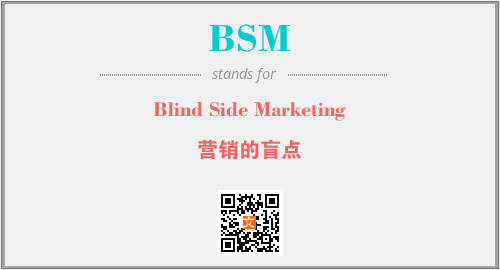 英文缩略词“BSM”经常作为“Blind Side Marketing”的英文缩写来使用,中文表示:“营销的盲点”。本文将详细介绍英文缩写词BSM所代表英文单词,其对应的中文拼音、详细解释以及在英语中的流行度。此外,还有关于缩略词BSM的分类、应用领域及相关应用示例等。