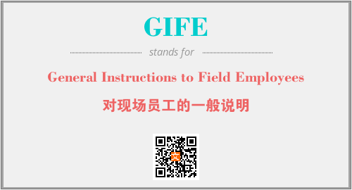 上述内容是“General Instructions to Field Employees”作为“GIFE”的缩写,解释为“对现场员工的一般说明”时的信息,以及英文缩略词GIFE所代表的英文单词,其对应的中文拼音、详细解释以及在英文中的流行度和相关分类、应用领域及应用示例等。
