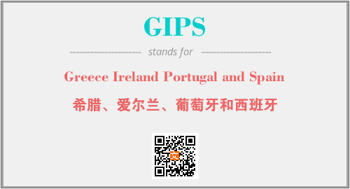 英文缩略词“GIPS”经常作为“Greece Ireland Portugal and Spain”的英文缩写来使用,中文表示:“希腊、爱尔兰、葡萄牙和西班牙”。本文将详细介绍英文缩写词GIPS所代表英文单词,其对应的中文拼音、详细解释以及在英语中的流行度。此外,还有关于缩略词GIPS的分类、应用领域及相关应用示例等。