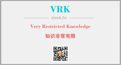 英文缩略词“VRK”经常作为“Very Restricted Knowledge”的英文缩写来使用,中文表示:“知识非常有限”。本文将详细介绍英文缩写词VRK所代表英文单词,其对应的中文拼音、详细解释以及在英语中的流行度。此外,还有关于缩略词VRK的分类、应用领域及相关应用示例等。