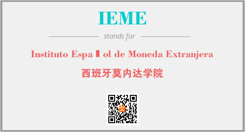 上述内容是“Instituto Español de Moneda Extranjera”作为“IEME”的缩写,解释为“西班牙莫内达学院”时的信息,以及英文缩略词IEME所代表的英文单词,其对应的中文拼音、详细解释以及在英文中的流行度和相关分类、应用领域及应用示例等。