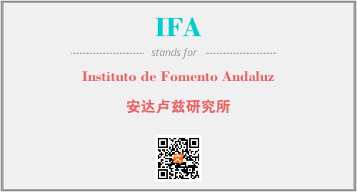 上述内容是“Instituto de Fomento Andaluz”作为“IFA”的缩写,解释为“安达卢兹研究所”时的信息,以及英文缩略词IFA所代表的英文单词,其对应的中文拼音、详细解释以及在英文中的流行度和相关分类、应用领域及应用示例等。