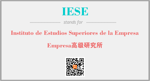 英文缩略词“IESE”经常作为“Instituto de Estudios Superiores de la Empresa”的英文缩写来使用,中文表示:“Empresa高级研究所”。本文将详细介绍英文缩写词IESE所代表英文单词,其对应的中文拼音、详细解释以及在英语中的流行度。此外,还有关于缩略词IESE的分类、应用领域及相关应用示例等。
