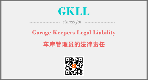 上述内容是“Garage Keepers Legal Liability”作为“GKLL”的缩写,解释为“车库管理员的法律责任”时的信息,以及英文缩略词GKLL所代表的英文单词,其对应的中文拼音、详细解释以及在英文中的流行度和相关分类、应用领域及应用示例等。