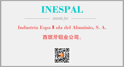 上述内容是“Industria Española del Aluminio, S. A.”作为“INESPAL”的缩写,解释为“西班牙铝业公司。”时的信息,以及英文缩略词INESPAL所代表的英文单词,其对应的中文拼音、详细解释以及在英文中的流行度和相关分类、应用领域及应用示例等。