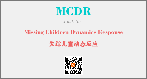 上述内容是“Missing Children Dynamics Response”作为“MCDR”的缩写,解释为“失踪儿童动态反应”时的信息,以及英文缩略词MCDR所代表的英文单词,其对应的中文拼音、详细解释以及在英文中的流行度和相关分类、应用领域及应用示例等。