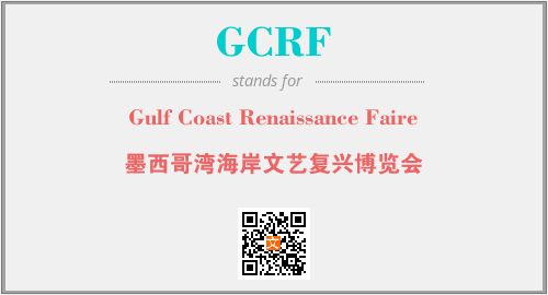 以上为Gulf Coast Renaissance Faire英文缩略词GCRF的中文解释,以及该英文缩写在英语的流行度、分类和应用领域方面的信息。