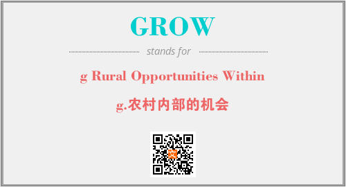 英文缩略词“GROW”经常作为“g Rural Opportunities Within”的英文缩写来使用,中文表示:“g.农村内部的机会”。本文将详细介绍英文缩写词GROW所代表英文单词,其对应的中文拼音、详细解释以及在英语中的流行度。此外,还有关于缩略词GROW的分类、应用领域及相关应用示例等。