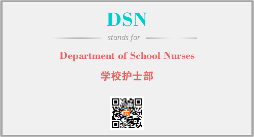 英文缩略词“DSN”经常作为“Department of School Nurses”的英文缩写来使用,中文表示:“学校护士部”。本文将详细介绍英文缩写词DSN所代表英文单词,其对应的中文拼音、详细解释以及在英语中的流行度。此外,还有关于缩略词DSN的分类、应用领域及相关应用示例等。
