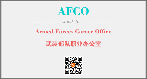 英文缩略词“AFCO”经常作为“Armed Forces Career Office”的英文缩写来使用,中文表示:“武装部队职业办公室”。本文将详细介绍英文缩写词AFCO所代表英文单词,其对应的中文拼音、详细解释以及在英语中的流行度。此外,还有关于缩略词AFCO的分类、应用领域及相关应用示例等。