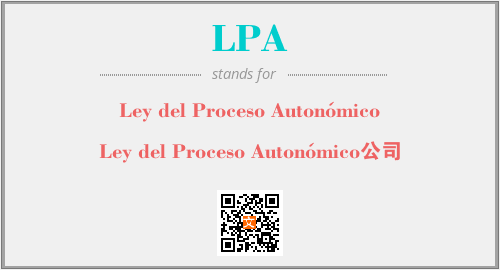 上述内容是“Ley del Proceso Autonómico”作为“LPA”的缩写,解释为“Ley del Proceso Autonómico公司”时的信息,以及英文缩略词LPA所代表的英文单词,其对应的中文拼音、详细解释以及在英文中的流行度和相关分类、应用领域及应用示例等。
