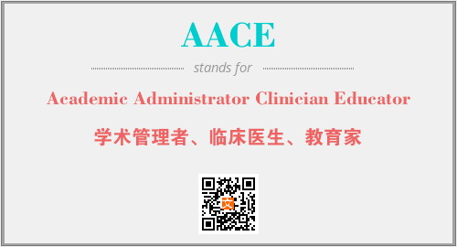 上述内容是“Academic Administrator Clinician Educator”作为“AACE”的缩写,解释为“学术管理者、临床医生、教育家”时的信息,以及英文缩略词AACE所代表的英文单词,其对应的中文拼音、详细解释以及在英文中的流行度和相关分类、应用领域及应用示例等。