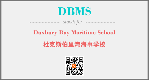 英文缩略词“DBMS”经常作为“Duxbury Bay Maritime School”的英文缩写来使用,中文表示:“杜克斯伯里湾海事学校”。本文将详细介绍英文缩写词DBMS所代表英文单词,其对应的中文拼音、详细解释以及在英语中的流行度。此外,还有关于缩略词DBMS的分类、应用领域及相关应用示例等。
