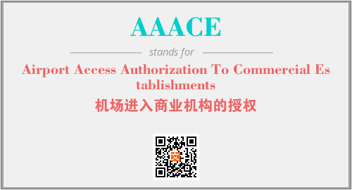 上述内容是“Airport Access Authorization To Commercial Establishments”作为“AAACE”的缩写,解释为“机场进入商业机构的授权”时的信息,以及英文缩略词AAACE所代表的英文单词,其对应的中文拼音、详细解释以及在英文中的流行度和相关分类、应用领域及应用示例等。