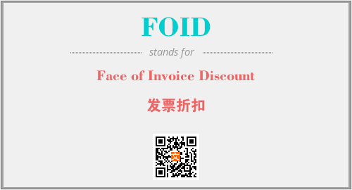 上述内容是“Face of Invoice Discount”作为“FOID”的缩写,解释为“发票折扣”时的信息,以及英文缩略词FOID所代表的英文单词,其对应的中文拼音、详细解释以及在英文中的流行度和相关分类、应用领域及应用示例等。