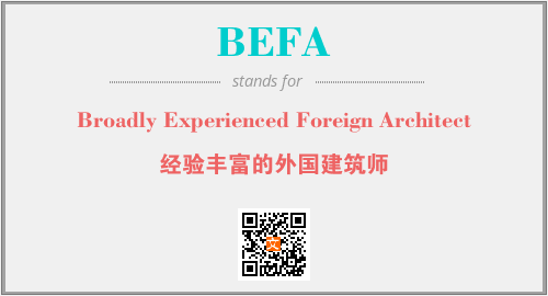 以上为Broadly Experienced Foreign Architect英文缩略词BEFA的中文解释,以及该英文缩写在英语的流行度、分类和应用领域方面的信息。