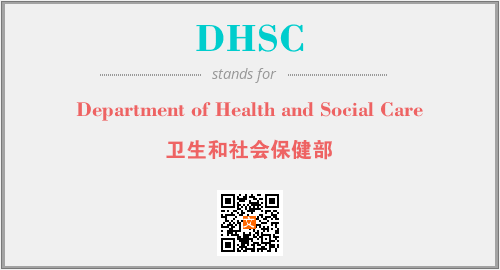 上述内容是“Department of Health and Social Care”作为“DHSC”的缩写,解释为“卫生和社会保健部”时的信息,以及英文缩略词DHSC所代表的英文单词,其对应的中文拼音、详细解释以及在英文中的流行度和相关分类、应用领域及应用示例等。