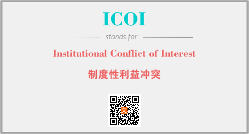 上述内容是“Institutional Conflict of Interest”作为“ICOI”的缩写,解释为“制度性利益冲突”时的信息,以及英文缩略词ICOI所代表的英文单词,其对应的中文拼音、详细解释以及在英文中的流行度和相关分类、应用领域及应用示例等。