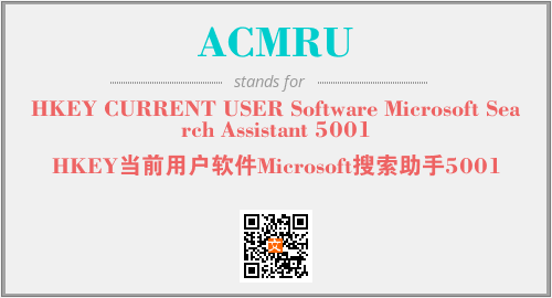 上述内容是“HKEY CURRENT USER Software Microsoft Search Assistant 5001”作为“ACMRU”的缩写,解释为“HKEY当前用户软件Microsoft搜索助手5001”时的信息,以及英文缩略词ACMRU所代表的英文单词,其对应的中文拼音、详细解释以及在英文中的流行度和相关分类、应用领域及应用示例等。