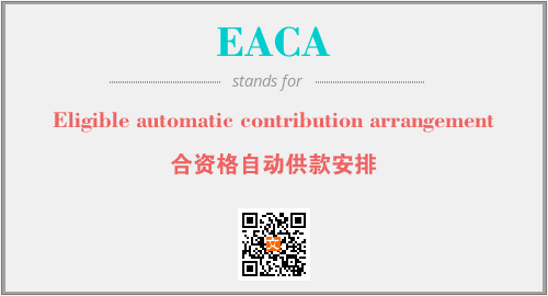 以上为Eligible automatic contribution arrangement英文缩略词EACA的中文解释,以及该英文缩写在英语的流行度、分类和应用领域方面的信息。